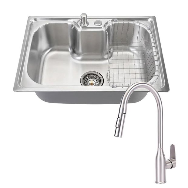 Acompanha válvula em Aço Inox 304 de 4 1/2" que possibilita a instalação de Triturador de Resíduos, Dispenser de detergente e escorredor em Aço Inox.