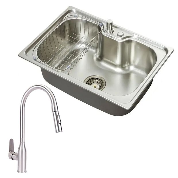 Acompanha válvula em Aço Inox 304 de 4 1/2" que possibilita a instalação de Triturador de Resíduos, Dispenser de detergente e escorredor em Aço Inox.