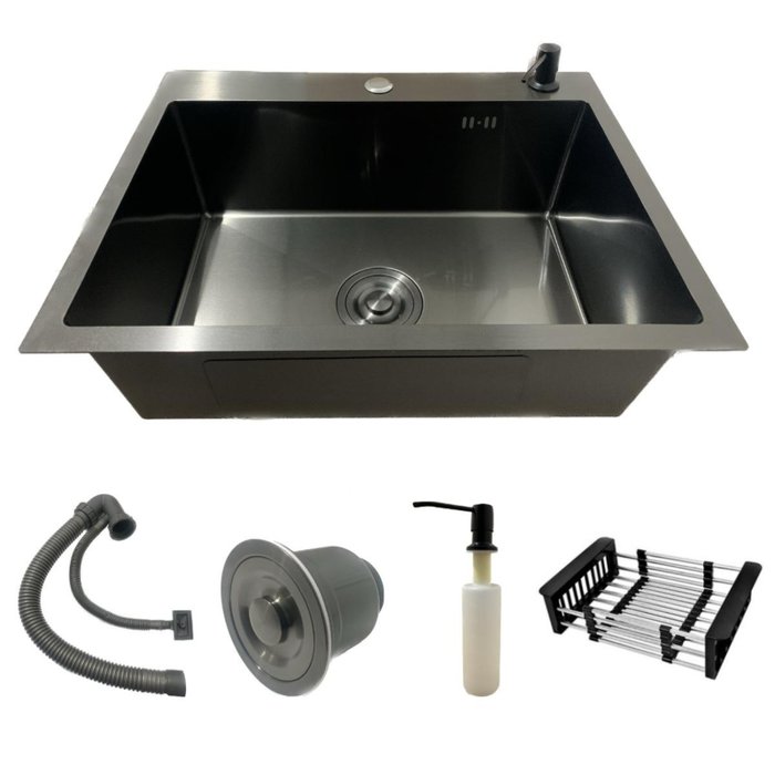 Cuba Pia Inox Preta Quadrada 60x45 Gourmet com Acessórios.