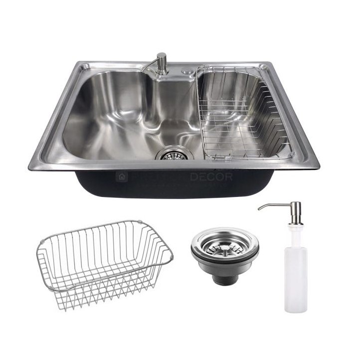 A Cuba de Sobrepor Premier Decor C550 em Aço Inox com Acabamento Escovado 60x42 cm com Válvula, Dosador de Sabão e Cesto é a escolha certa para acrescentar elegância e requinte ao projeto de sua cozinha.