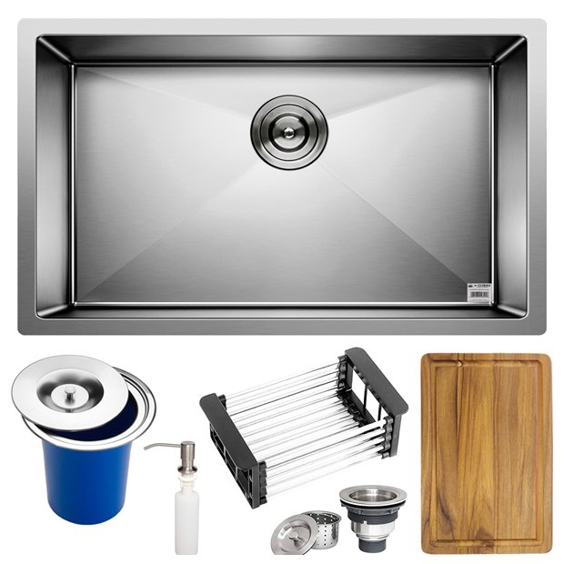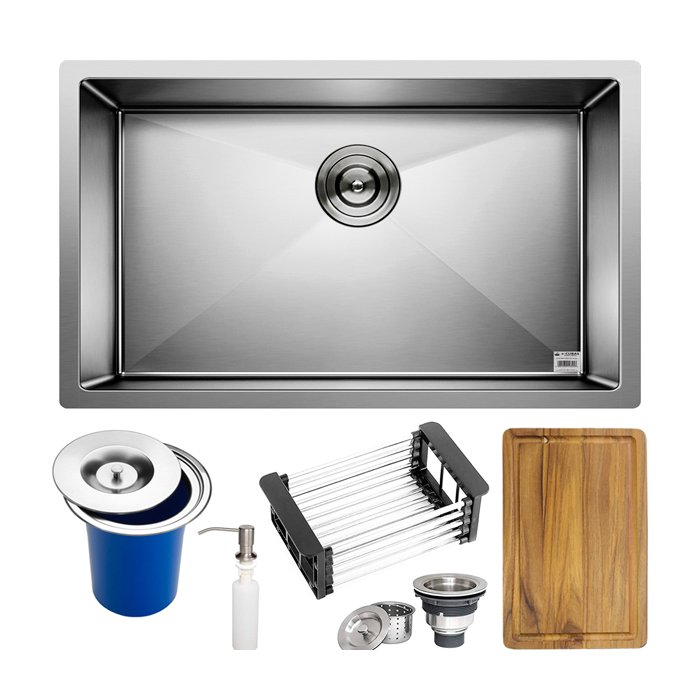 Cuba Quadrada Inox 304 Cozinha Pia Embutir Sobrepor Gourmet 70x40 Premium com Lixeira de Embutir 5L, Tábua Multiuso e Acessórios