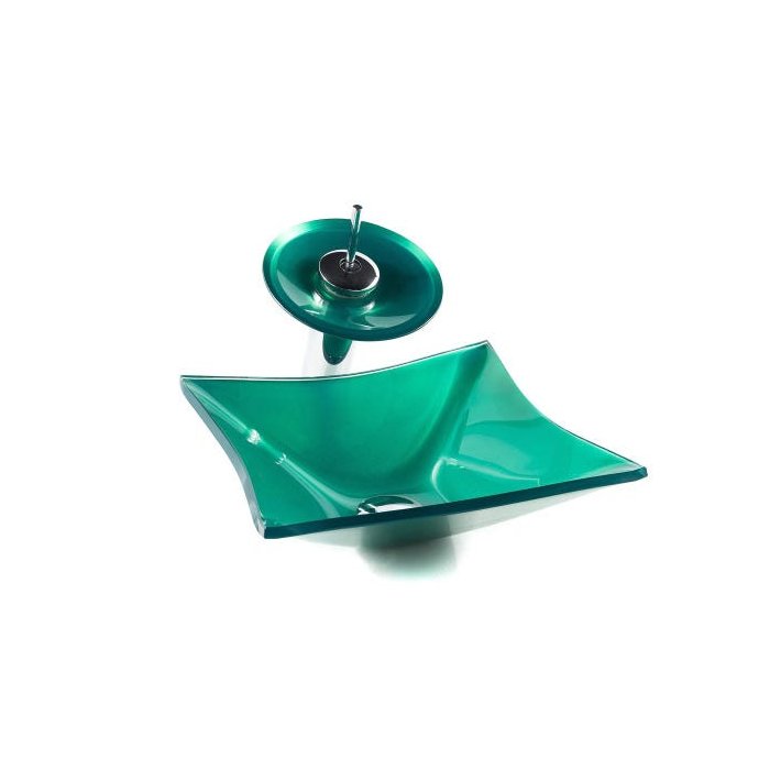 Cuba Quadrada Rt 34 Cm + Torneira Cascata + Válvula Click - Verde