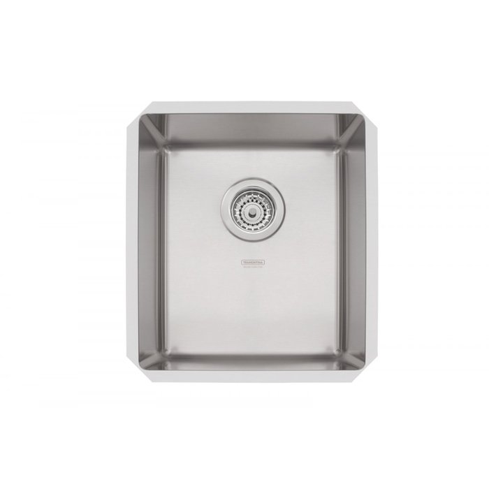 Cuba Tramontina Quadrum Undermount em Aço Inox com Acabamento Scotch Brite 34 U 34x40 cmAlta tecnologia e sofisticação são as características essenciais da Cuba Tramontina Quadrum 34 Undermount em Aço Inox com Acabamento Scotch Brite 34 U da Linha Prime. Com a exclusividade dos produtos Tramontina, ela traz um design inovador e cheio de estilo para sua cozinha. Produzida em aço inox, ela garante a resistência e higiene do material. O acabamento em Scotch Brite dá toques de requinte à peça. A qualidade diferenciada também está presente em seu visual com grande profundidade, que se adapta a diferentes projetos e qualquer estilo da decoração da sua cozinha. Possui dimensões de 34x40 cm e cria ambientes confortáveis que impressionam. Acompanha válvula de 4 1/2 polegadas.Cuba em aço inox AISI 304 com 1mm de espessura e acabamento Scotch Brite.Cuba com 205 mm de profundidade.Raio interno da cuba de 12 mm.Cuba com manta adesiva antirruído.Acompanha o produto válvula Ø 4 1/2 .Dimensões de corte do tampo disponíveis para consulta no manual do produto no site ou no gabarito de corte que acompanha com a peça.Para um perfeito funcionamento da cuba, montar inicialmente a válvula e, após, fixar a peça no tampo, conforme folheto de instruções que acompanha o produto.Remover a etiqueta colada na peça.Limpar com detergentes normais neutros.Usar somente esponja macia ou pano para lavar a peça.Esta peça contém bordas cortantes. Manusear com cuidado.Não usar ácido muriático, água sanitária ou qualquer outro solvente para lavar objetos na peça.Na reforma ou construção, proteger a peça para não deixarsobre a mesma pó de cimento ou gesso.Enxaguar e secar bem a peça após o uso.Nunca deixar objetos metálicos sobre a peça por períodos muito