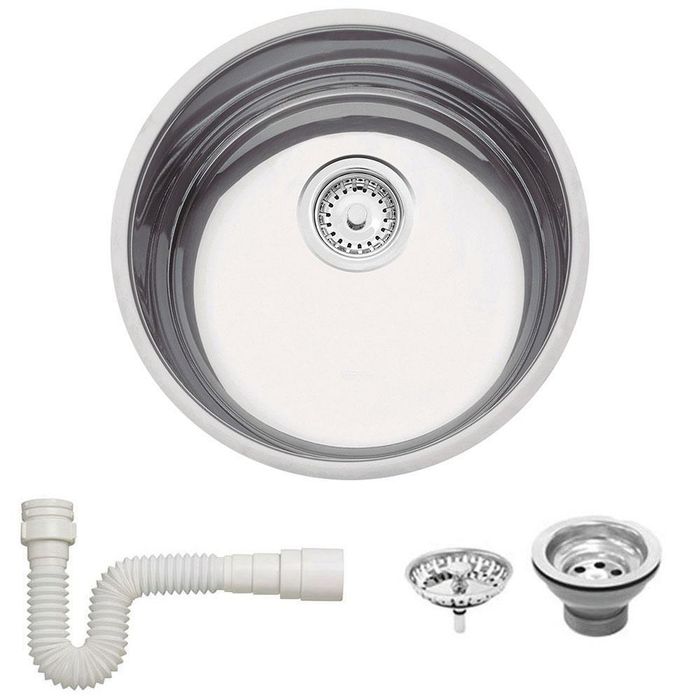 Cuba Redonda Tramontina Luna 38 Bl Standart em Aço Inox Polido 38 Cm com Válvula e Sifão 94075507