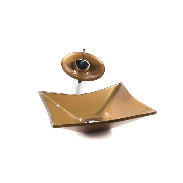 Cuba Retangular + Torneira Cascata + Válvula + Sifão - BRONZE BRONZE