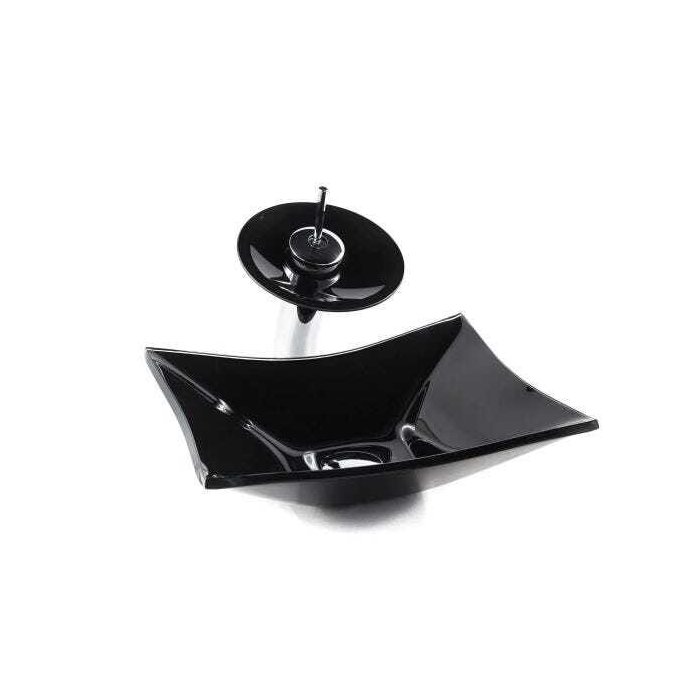 Cuba Retangular + Torneira Cascata + Válvula + Sifão + Te - Preto Preto