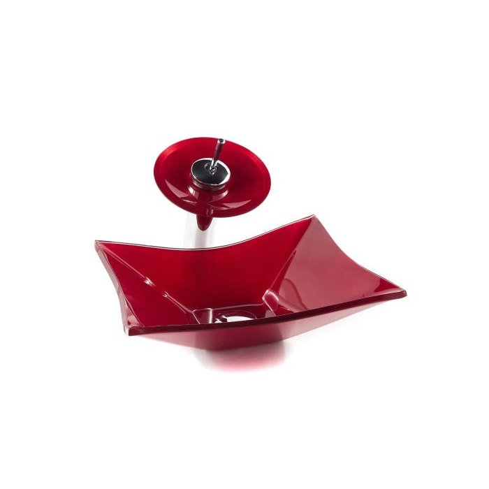 Cuba Retangular + Torneira Cascata + Válvula + Sifão + Te - Vermelho escuro