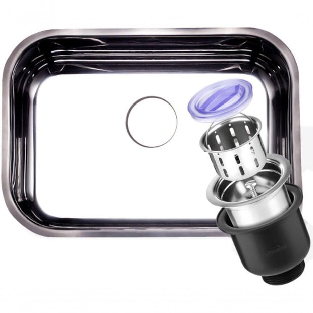 CUBA ECO 14CM DE PROFUNDIDADE ACABAMENTO: POLIDO MODELO: CUBA 2 MEDIDAS CM: 56X34 INOX AISI: 430,05 FURO VÁLVULA: 3¹/2 COM VÁLVULA: 1 NCM de Cubas: 7324.10.00 Diferenciais e Argumentos de Vendas: Cuba com menor profundidade, alto padrão e novas tendências. Adesivo antirruído e acetinado moderno
