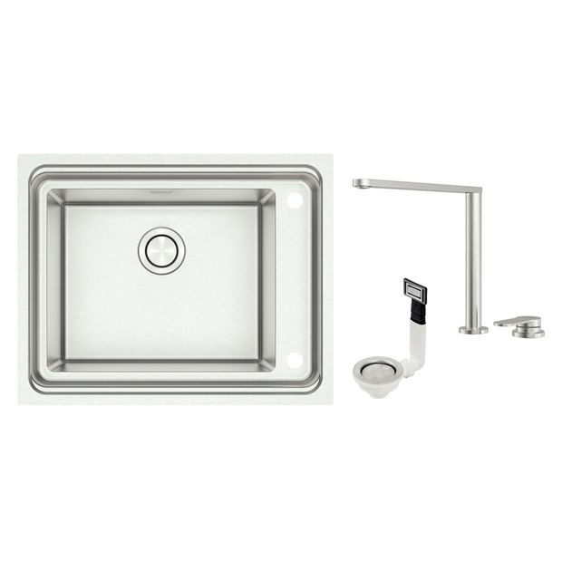 CUBA SOBREPOR INOX DEEP 50 COM ESCAPE E MONOCOMANDO HIDDEN - TRAMONTINA Sofisticação e praticidade em um único conjunto para sua cozinha:A Cuba Deep 50 da Tramontina é a solução perfeita para cozinhas modernas que exigem design, funcionalidade e durabilidade. Com instalação sobrepor, estrutura em aço inox polido de alta resistência e profundidade ampliada, ela proporciona mais espaço e praticidade para as tarefas do dia a dia.Acompanha escape embutido, que permite um escoamento eficiente da água, e o monocomando Hidden, uma torneira discreta e elegante que mantém o ambiente visualmente limpo e sofisticado. Destaques do Produto: