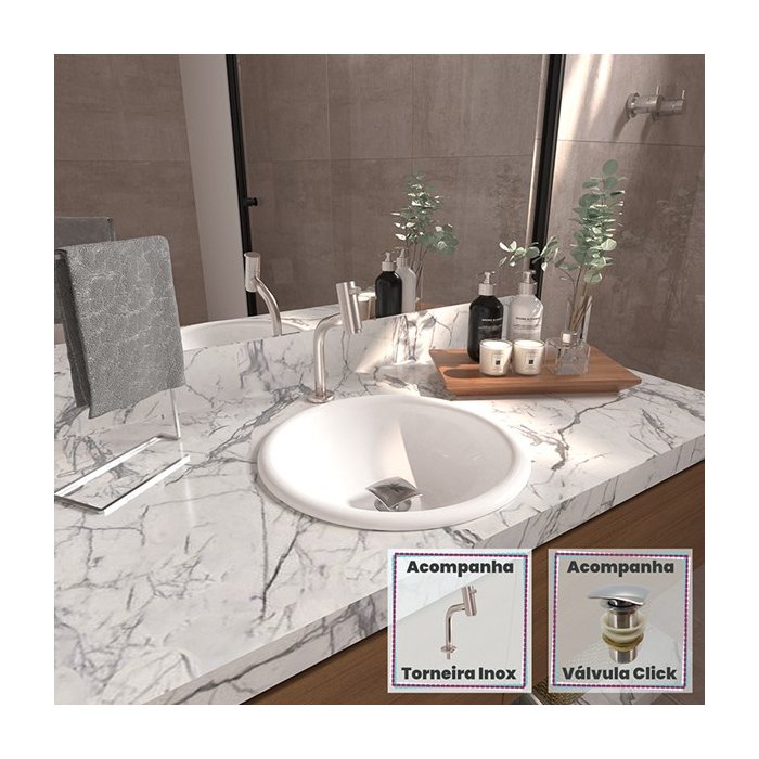 Cuba Sobrepor Lume com Torneira Inox Curva e Válvula Click Branco