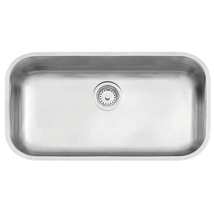 Produto: Cuba com bordas lisas para instalação por baixo da bancada e 17 cm de profundidade. Opcionalmente são oferecidos acessórios como, tábua em madeira, grade aramada, bandeja perfurada e cesta quadrada.