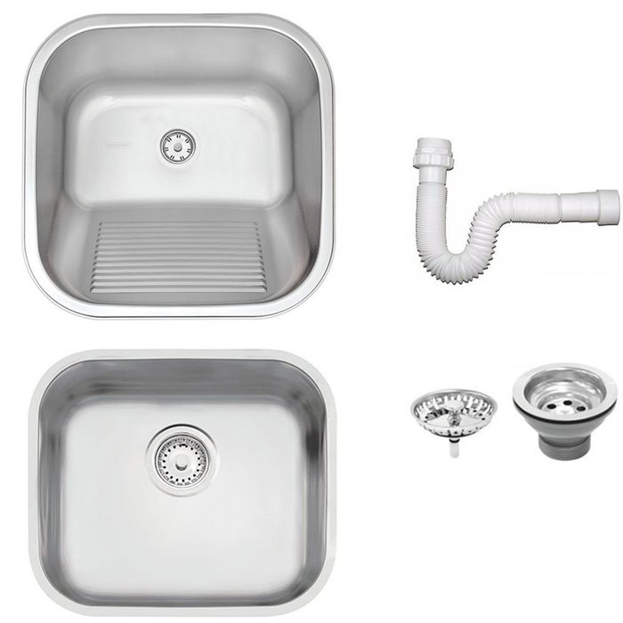 CUBA TRAMONTINA EM AÇO INOX ACETINADO 40x34 CM E TANQUE ACETINADO 40X40 E SIFÃO 94020107