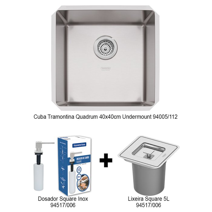 Cuba Tramontina Quadrum 40x40 + Lixeira Sq 5l + Dosador Sq 94005994