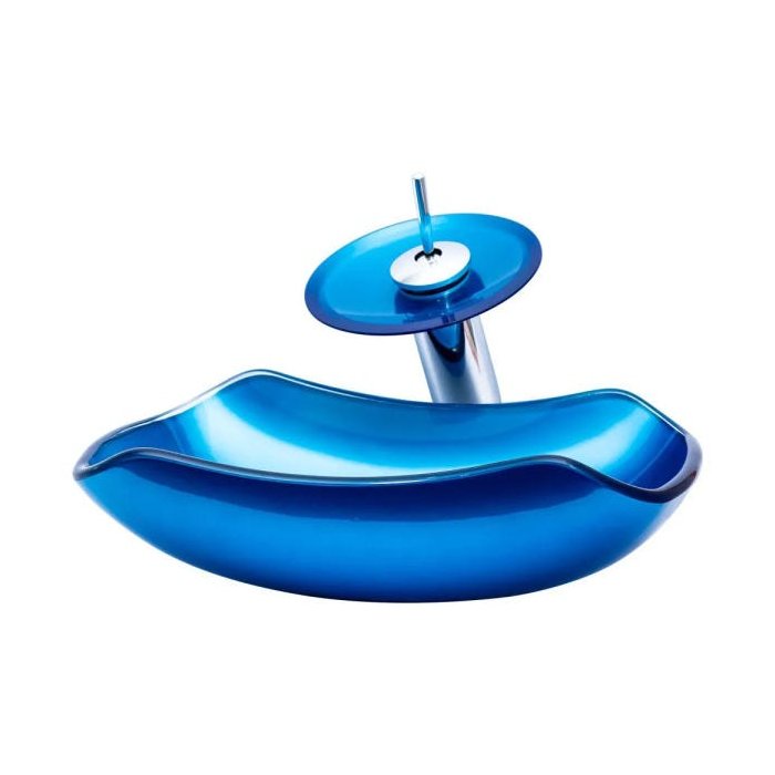Cuba Vidro Abaulada + Torneira Cascata +Válvula Click - Azul
