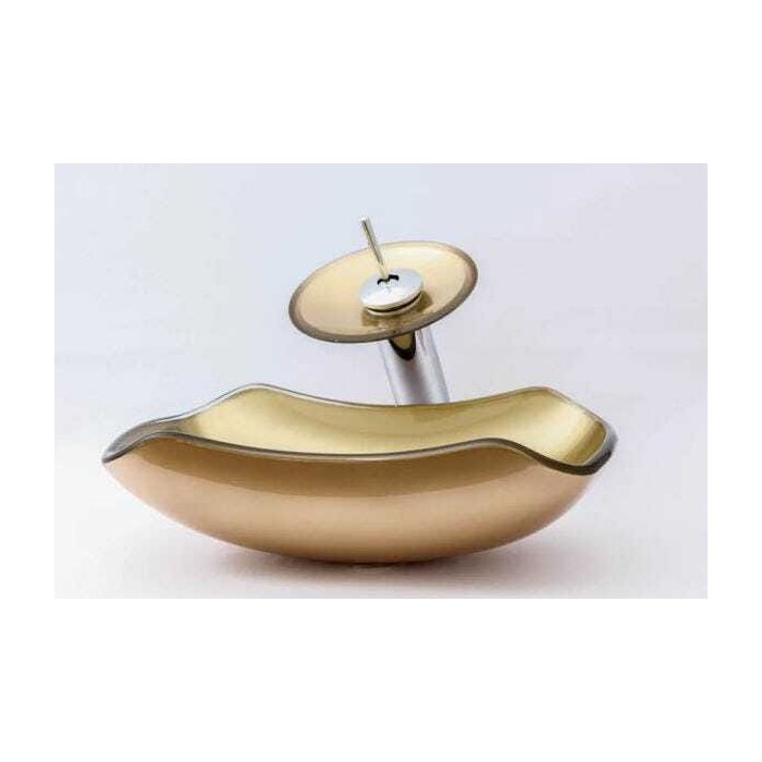 Cuba Vidro Abaulada + Torneira Cascata + Válvula + Sifão - Dourado