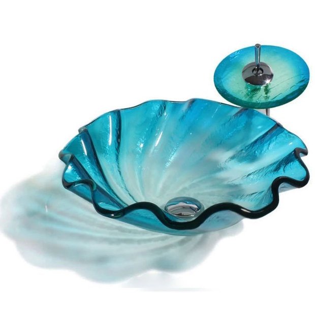 Cuba Apoio Evier Flower Glass Shell Azul Banheiro Lavabo