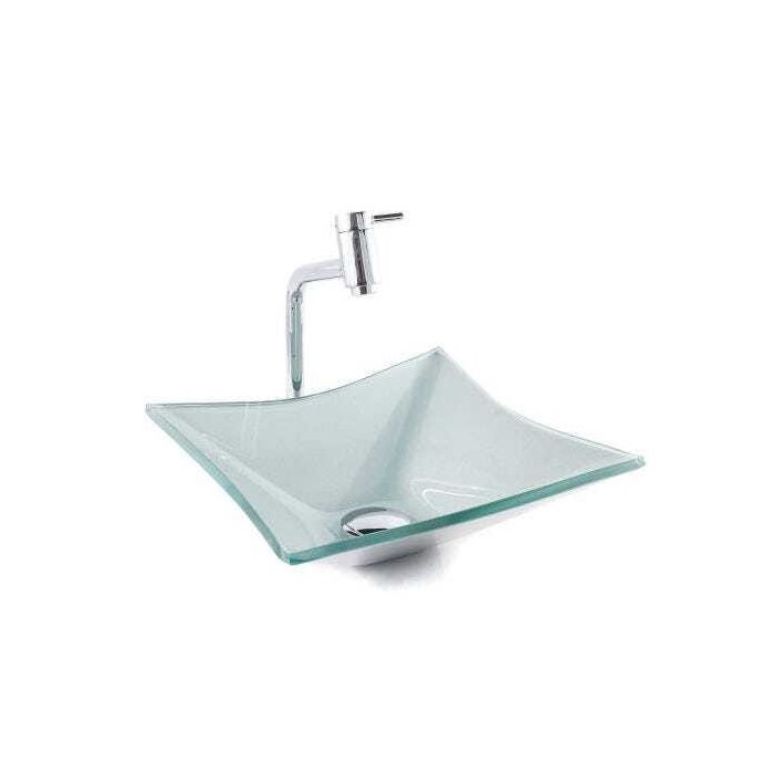 Cuba Vidro Quadrada RT 30Cm + Torneira Link + Válvula + Sifão - Cinza claro - 30 x 30 x 11 Cm