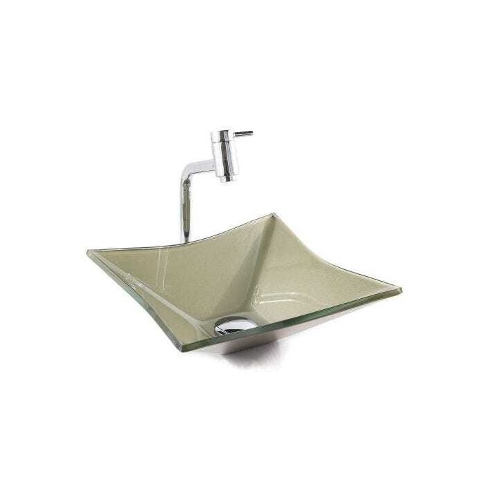 Cuba Vidro Quadrada RT 30Cm + Torneira Link + Válvula + Sifão - Creme - 30 x 30 x 11 Cm