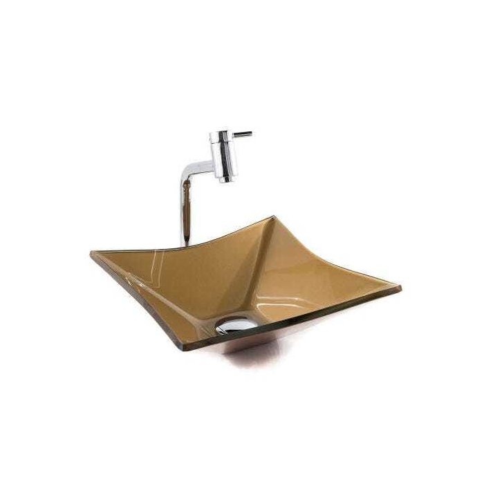 Cuba Vidro Quadrada RT 30Cm + Torneira Link + Válvula + Sifão - Marrom amarelado - 30 x 30 x 11 Cm