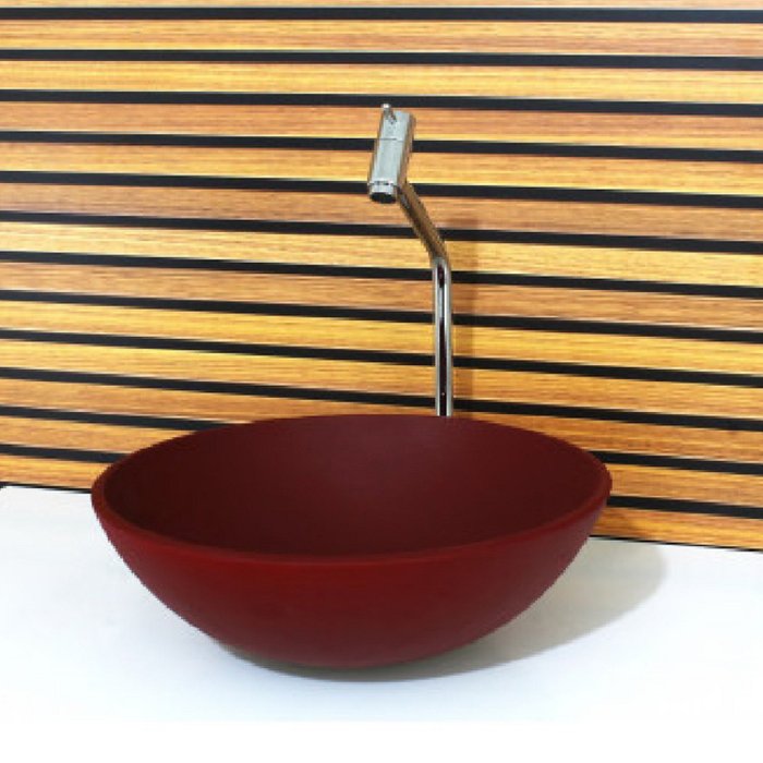 Cuba Vidro Redonda 30cm com Torneira e Valvula Vermelho Fosco