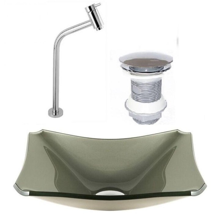 * Imagens ilustrativas. CUBA DE VIDRO RETANGULAR CHANFRADA + VÁLVULA POLIPROPILENO + TORNEIRA METAL CROMADA