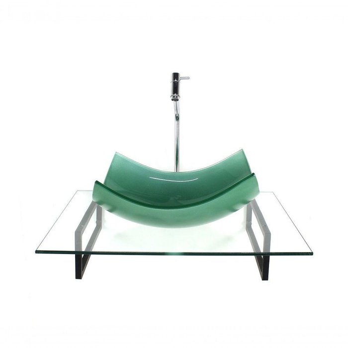 Cuba Vidro Retangular Curvada Verde C Tampo e Suporte Preto