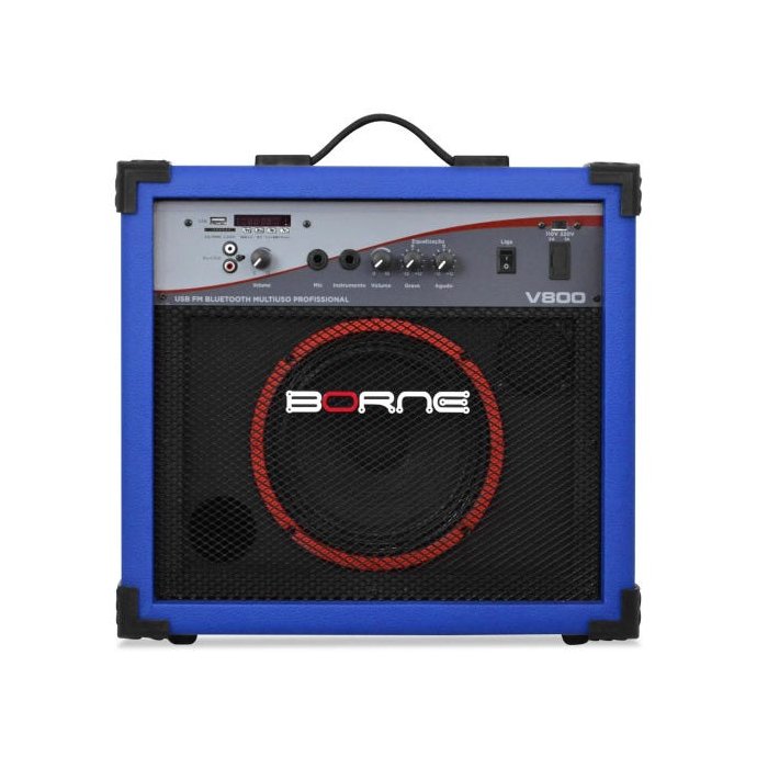 CUBO MULTIUSO | 8 POLEGADAS | 60W | BORNE MODELO: V800BT O Cubo Multiuso Borne V800BT conta com toda a elegância e ergonômia dos produtos Borne, com suporte Bluetooth, e acabamento em curvim. Especificações gerais e técnicas do produto: - Alto-falante de 8" Tweeter; - Potência : 60W; - 1 Entrada para microfone com volume; - 1 Entrada para instrumento com volume; - Entrada para USB/SD/MMC; - Controle de grave, agudo e volume; - Bluetooth e FM; - Proteção térmica do circuito de amplicação; - Acabamento em curvim; - Grade de aço para proteção do alto-falante e tweeter; - Alimentação: 110V AC/220V AC; - 1 Entrada auxiliar para conectar, teclado, TV, DVD, celular, notebook, com volume independente. Dimensões e peso: - Altura: 415mm; - Largura: 395mm; - Comprimento: 230mm; - Peso: 7,8 Kg. Conteúdo da Embalagem: - 01 Cubo Multiuso V800BT 8 Polegadas 60W Azul Borne; - Manual de Instruções. Fabricante: Borne Caixa Ativa | Bluetooth e FM | Borne V800BT