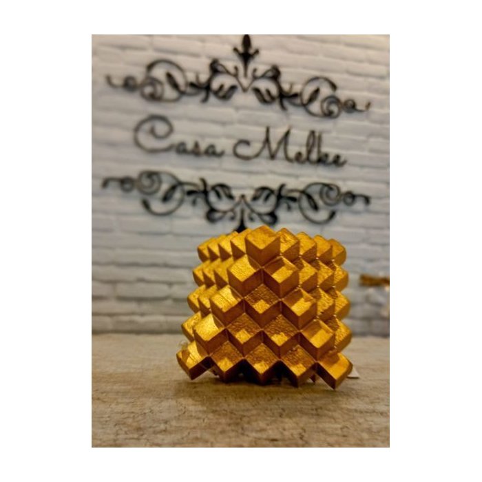 Cubos Resina Dourada Detalhe Quadrados 10x10x10cm