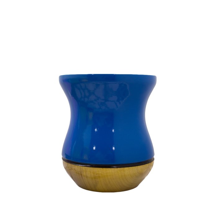 Cuia Madeira imbuia bicolor azul