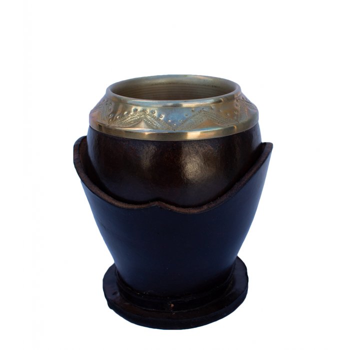 Cuia porongo porta cuia em couro bocal trabalhado alpaca