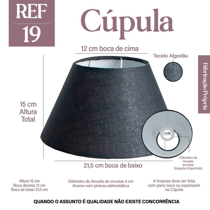 Descubra a harmonia perfeita entre design elegante e qualidade excepcional. Nossa cúpula é confeccionada com o mais puro algodão, proporcionando uma textura suave e agradável ao toque, além de trazer um charme acolhedor a qualquer ambiente.
