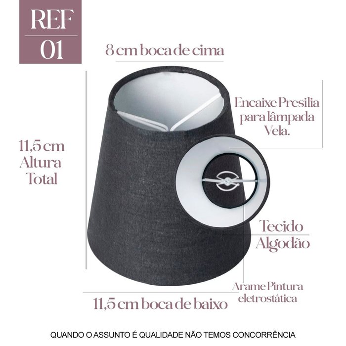 Cúpula De Tecido Para Lustre Algodão Tamanho P Preta:
