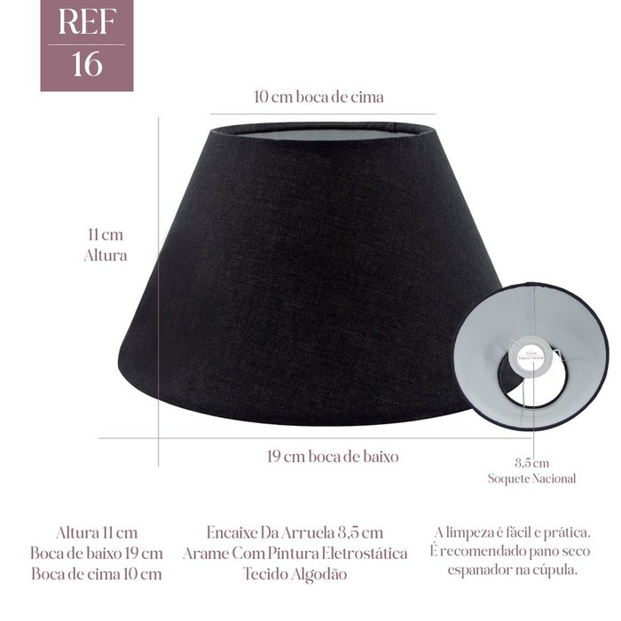 Cúpula Para Abajur Tecido Algodão Preto Ref 16: