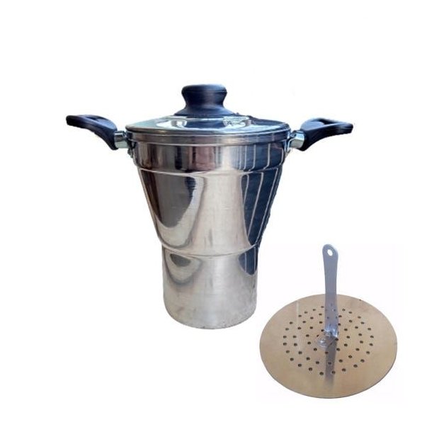 O cuscuzeiro polido não pode faltar em sua cozinha, feito em alumínio de alta resistência e durabilidade e possui cabos e pegadores em baquelite antitérmico para dar mais segurança no manuseio, e você pode utilizá-lo como panela vaporizadora para cozinhas outros alimentos.