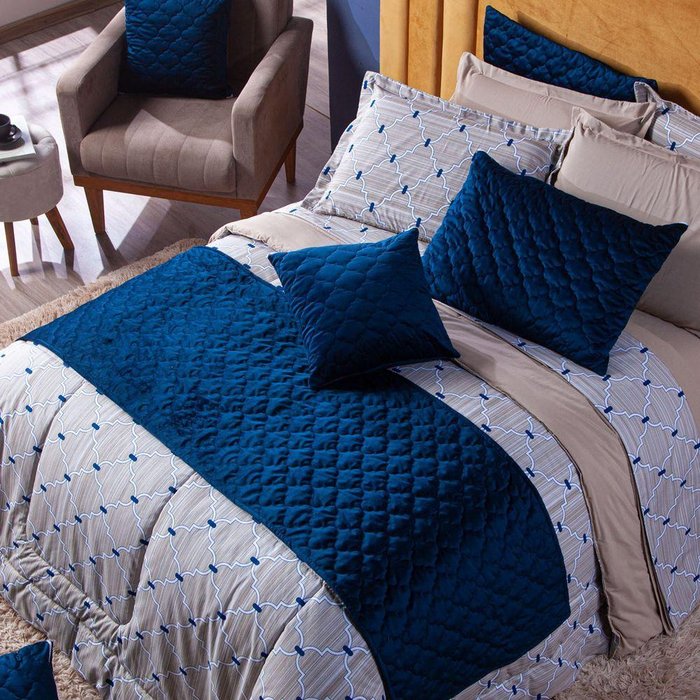 Kit De Peseira Florence Azul Marinho 04 Peças - Tecido Veludo