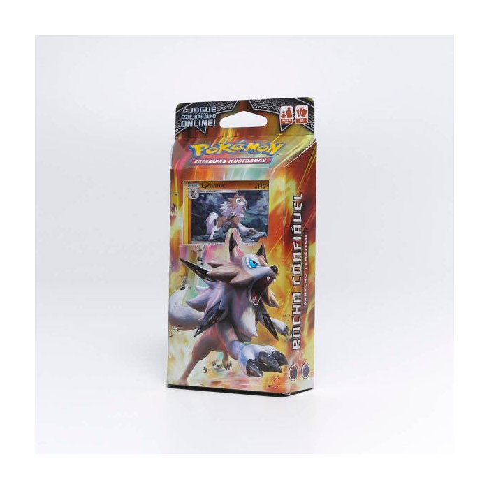 Jogo de cartas Copag Pokémon Starter Deck Rocha Confiável coleção Sol e Lua 3 Sombras Ardentes Lycanroc contendo 60 cards de Pokémon em papel cartão no formato 63X88mm em português para jogar e colecionar indicado para meninos e meninas de 4 anos ou mais. Estão inclusos também uma lista de cartas, uma moeda, um tabuleiro para 2 jogadores com as regras do jogo no verso, uma carta codificada para jogar este baralho online, uma caixa de baralho e contadores de danos. O jogo desenvolve a criatividade, coordenação visual e motora além da interação pais e filhos.