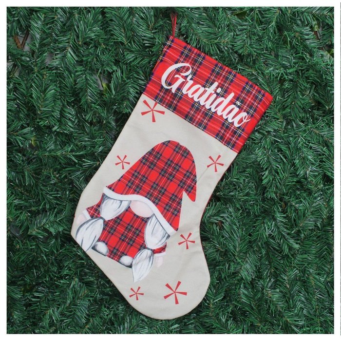 Decoração Bota Meia Enfeite Natalino Xadrez Temático 47cm -