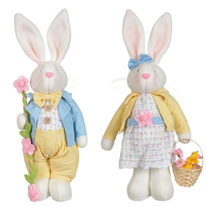 Decoração Casal Sr. Sra Coelho Páscoa Pelúcia 39,5 cm