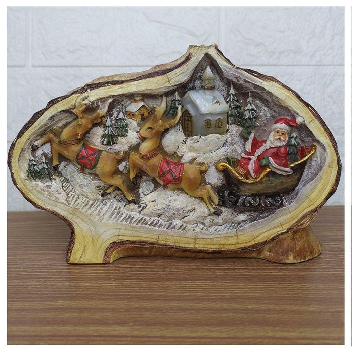 Decoração Cenário Natalino Igreja Iluminada Papai Noel Resina -