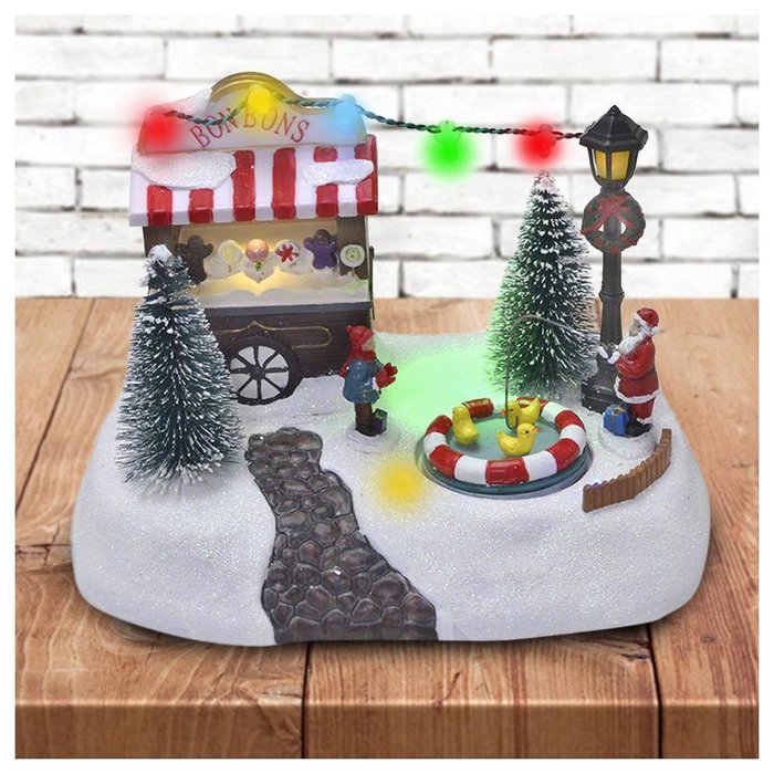 Decoração Cenário Natalino Musical Parque De Diversão Iluminado 18,5cm -