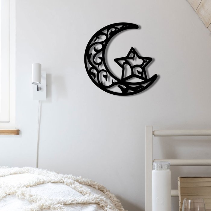 Decoração De Mdf 6mm Lua E Estrela Vazada Preto