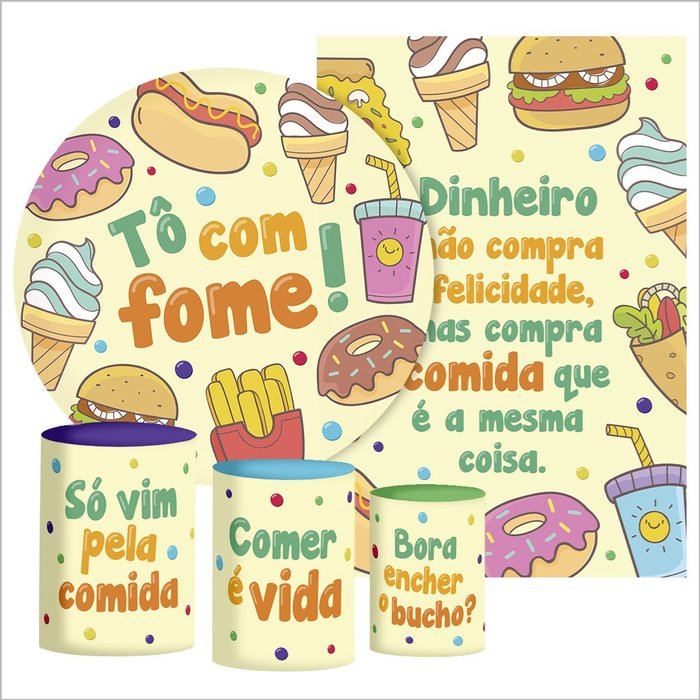 Decoração Festa Aniversário Kit Painéis Casado + Trio Capa Cilindro Tô com Fome Enfeite Festa Aniver