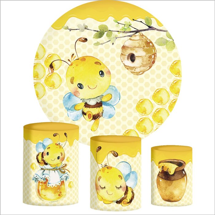 Decoração Festa Aniversário Painel Tecido Redondo e Capas Cilindro - Abelha Inove Adesivos ABELHA -
