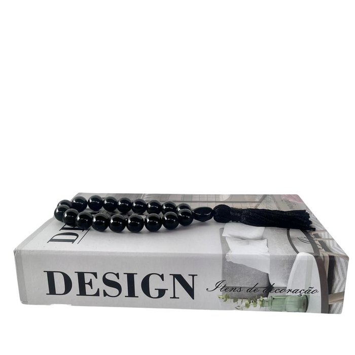 Conjunto decorativo enfeite rack estante sala livro caixa fake de papelão para guardar objetos + enfeite adorno colar decorativo Japamala luxo de plástico artesanal preto.