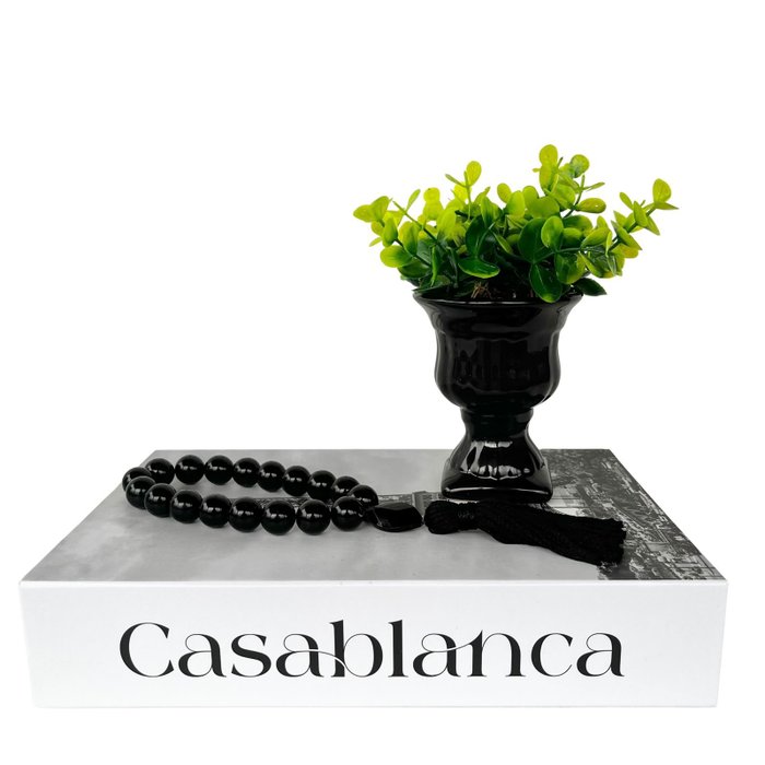 Nada mais encantador, original e inspirador do que utilizar livros na decoração de diversos ambientes, como salas de estar, escritórios, quartos, home office e onde mais sua imaginação permitir. Os livros decorativos são a mais nova tendência na decoração contemporânea e permitem diversas combinações e utilizações, dando um ar de sofisticação em mesas de centro, aparadores, prateleiras, escrivaninhas etc. Esse lindo livro estampa 'Casa Blanca', irá encantar você pela riqueza de detalhes e qualidade no acabamento, juntamente da nossa dupla de vasinho e enfeite colar que vão dar um toque todo especial no seu ambiente.