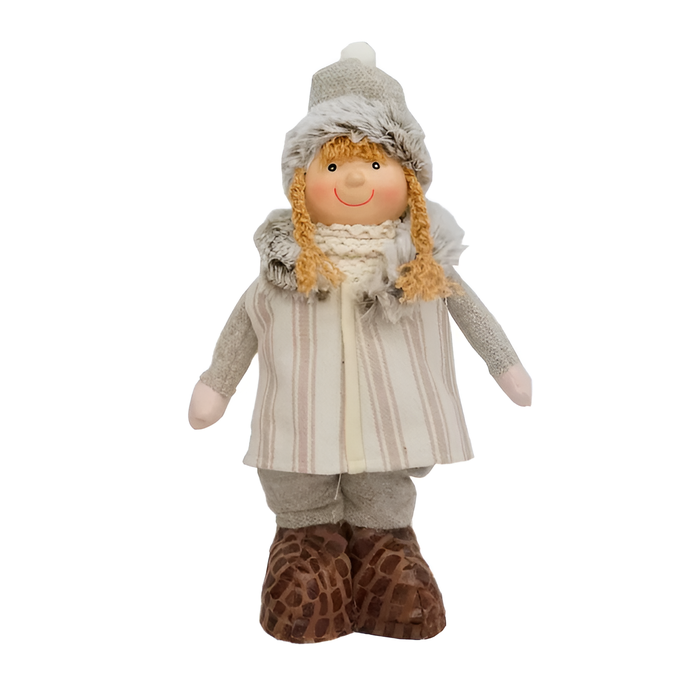Decorativo Pelúcia Menina Natalina Enfeite Natal 30cm Marrom; Cinza