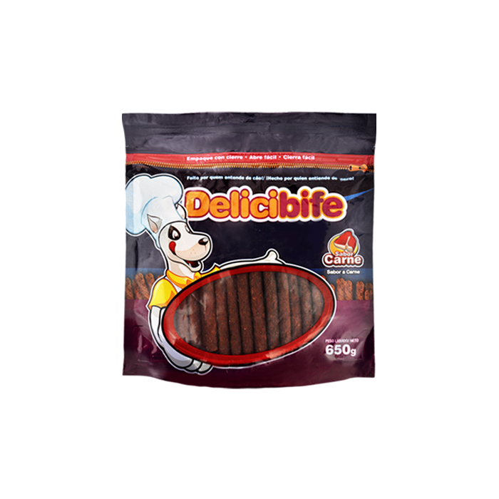 Delicibife é um delicioso petisco elaborado com carnes e matérias-primas selecionadas. É indicado para cães de todas as raças e idades.