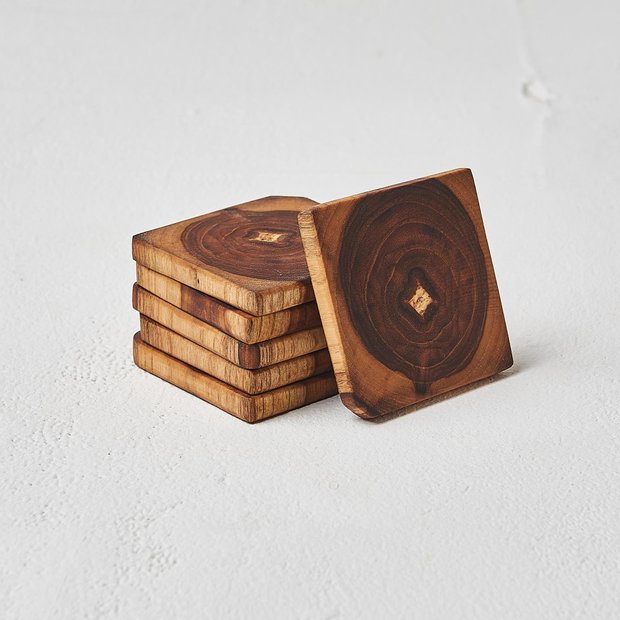 O kit ideal para a sua mesa posta ou para proteger os seus móveis no dia a dia. Para a fabricação dos porta-copos, utilizamos a madeira teca de reflorestamento, em suas características naturais. Cada peça apresenta em seu design o nó proveniente da madeira teca, acrescentando o acabamento feito com verniz a óleo da Iron Fittings, o que deixa a madeira totalmente impermeável e resistente. Por ser uma madeira nobre, ela possui altíssima durabilidade.