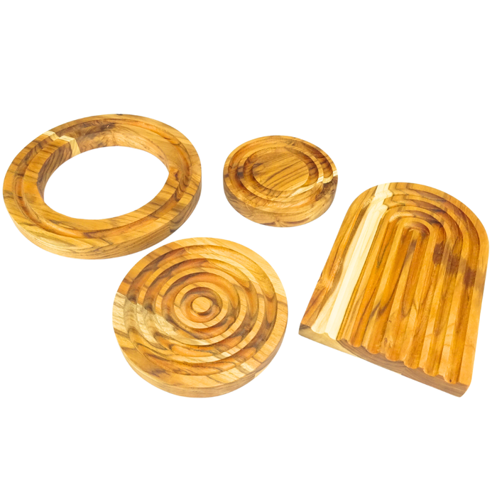 Feitos em madeira teca de reflorestamento, cada apoio é único, com veios e tons naturais distintos. Os produtos são cortados com alta precisão por equipamentos modernos e recebem acabamento manual. Lixados e envernizados à mão para garantir qualidade superior.
