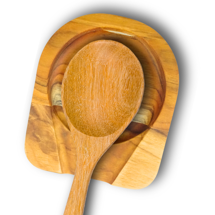 Nada como preparar suas receitas favoritas com tudo em seu devido lugar. Com o Descanso de Colher de madeira teca, você mantém sua bancada limpa e organizada enquanto sente a leveza de usar um acessório bonito e funcional. Cada apoio é uma peça única, o que faz da sua cozinha um espaço ainda mais especial.